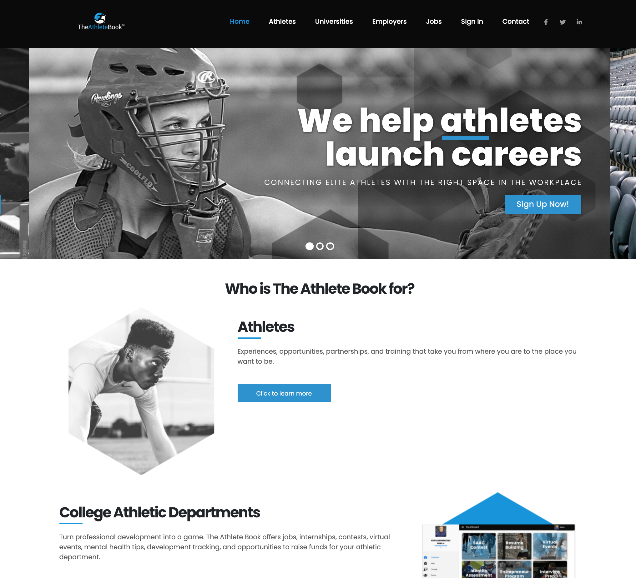 Based out of Philadelphia, The Athlete Book is a new web startup that aims to connect college athletes with employers looking for candidates with that competitive edge. D.J. was brought in to develop a fresh look that complemented the company’s existing logo. In addition to an overhaul of the company’s WordPress website, the creation of marketing collateral, and providing design input on The Athlete Book’s backend user interface, much of the work also needed to be completed in the free online platform Canva so that the client would be able to easily duplicate and modify as needed.